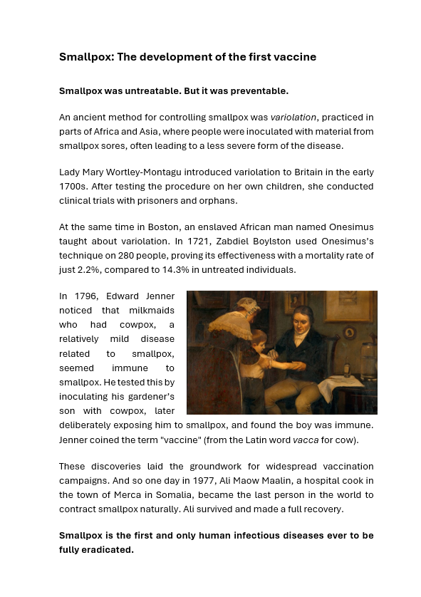The development of the first vaccine